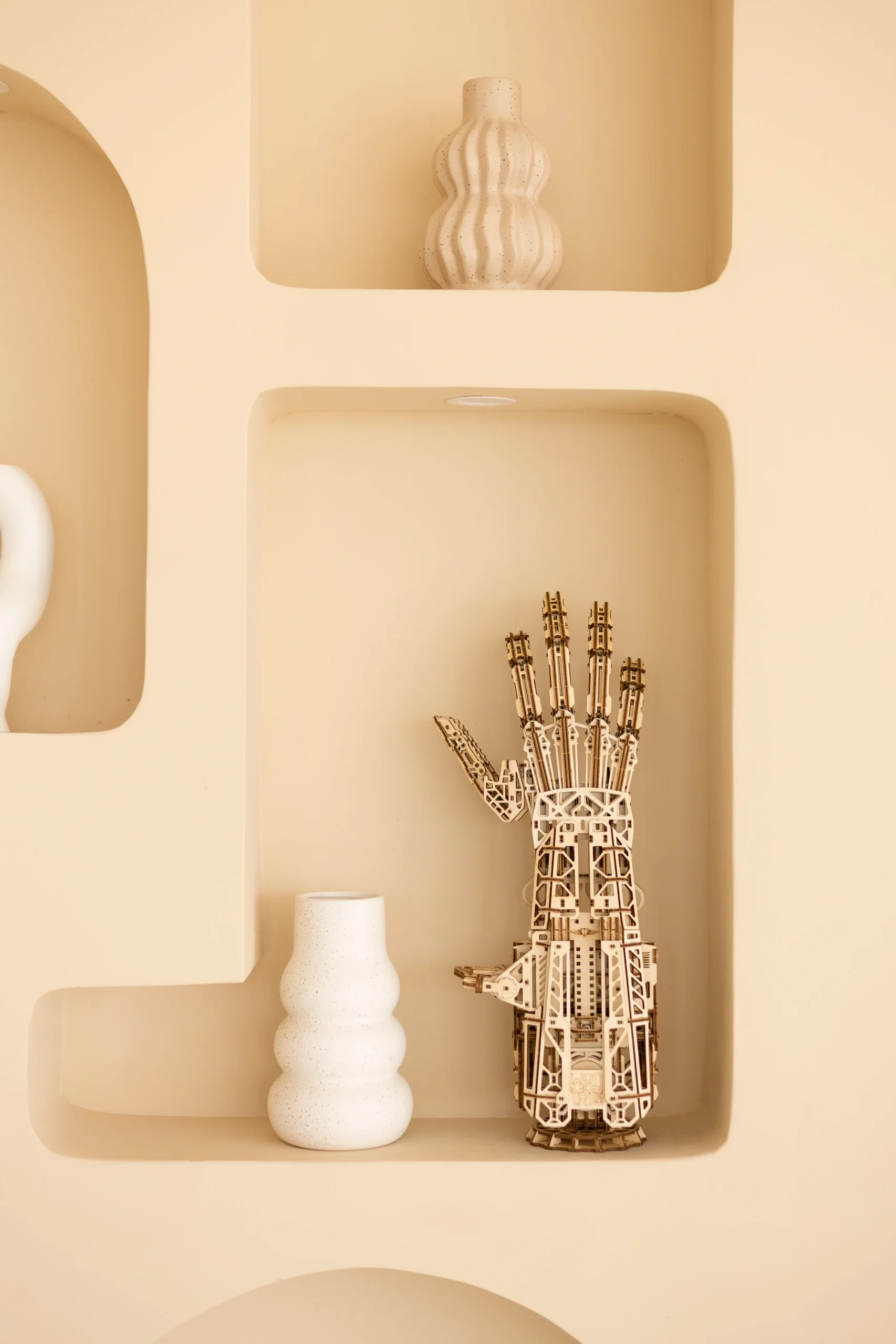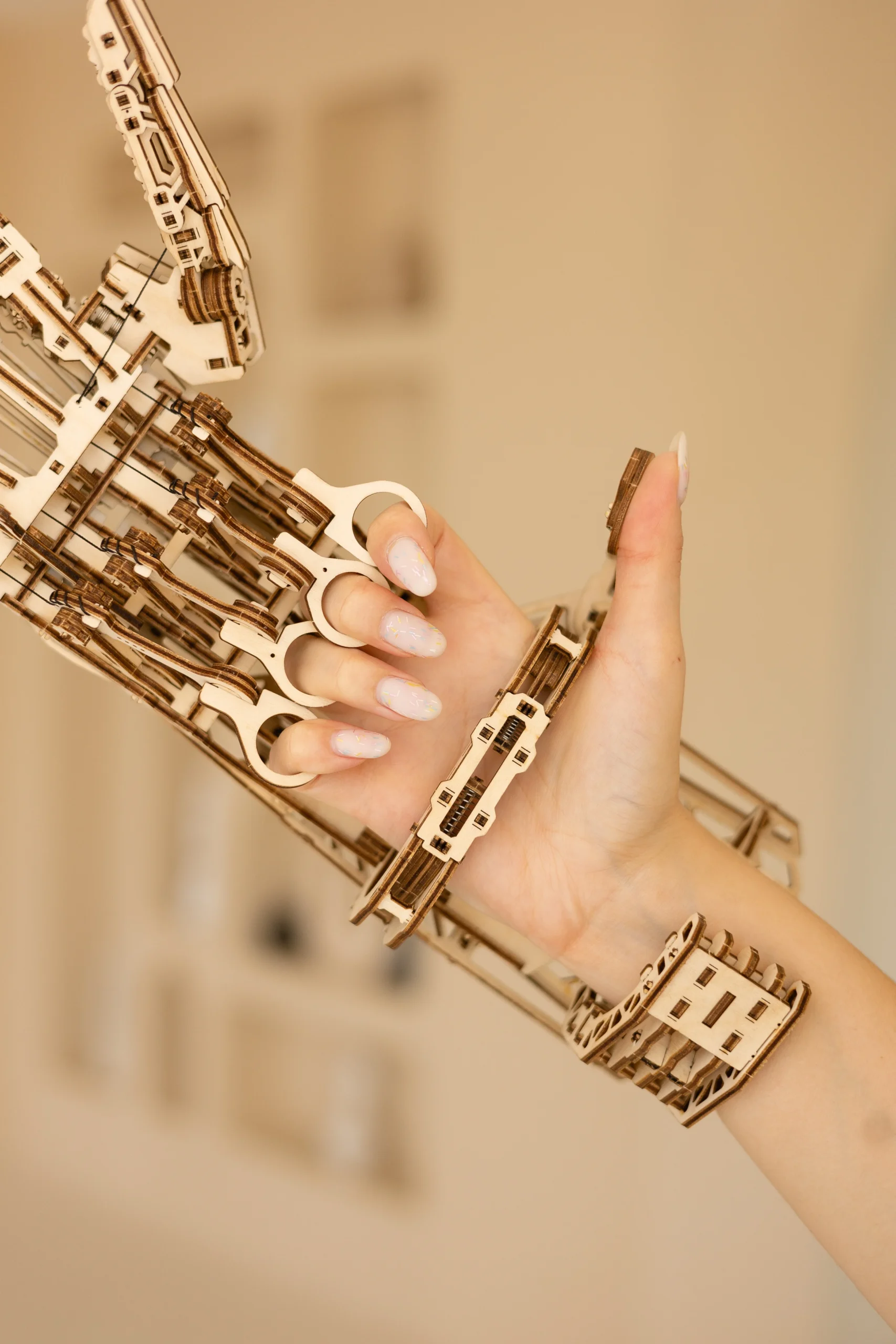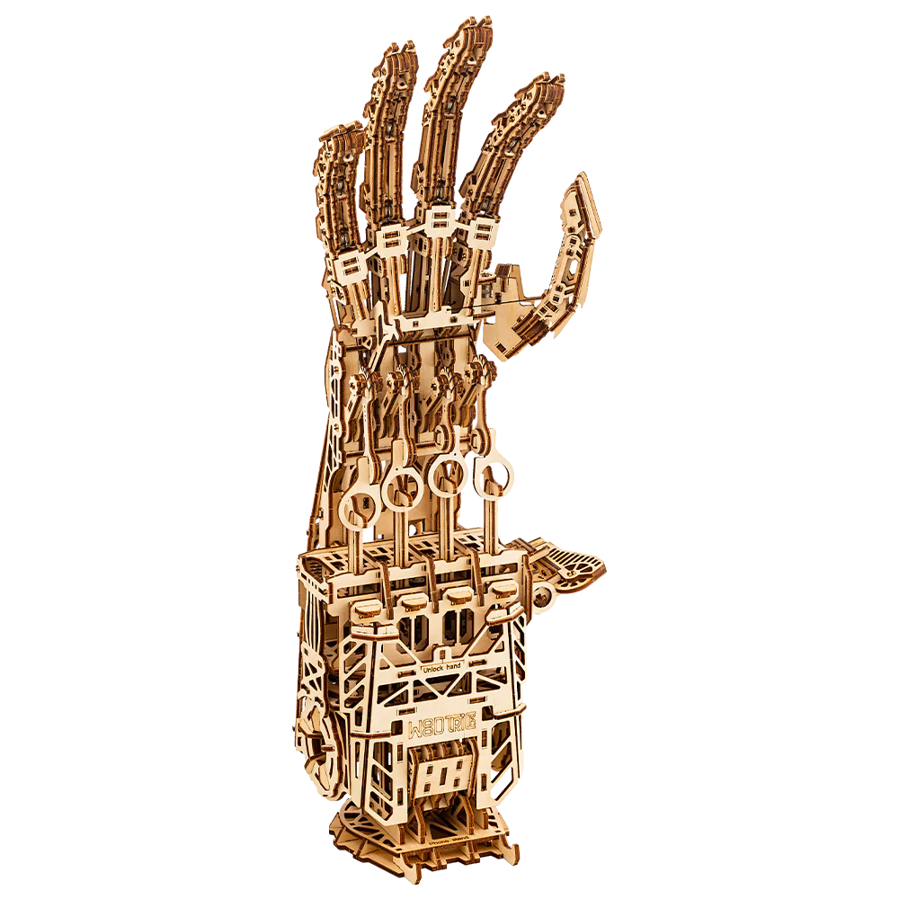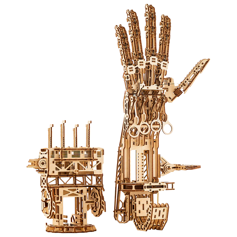 See lahe küberpungi stiilis robo-käsi on suurepärane kingitus robotite puslede austajatele, samuti ulmefilmide ja kübertuleviku seikluste fännidele. Valmistatud täielikult jätkusuutlikust vineerist, on kõik pusletükid siledad ja keskkonnasõbralikud. Ja loomulikult ei ole sul vaja liimi ega muid lisatarvikuid – lihtsalt sobita puuosad kokku ja hakka mängima!