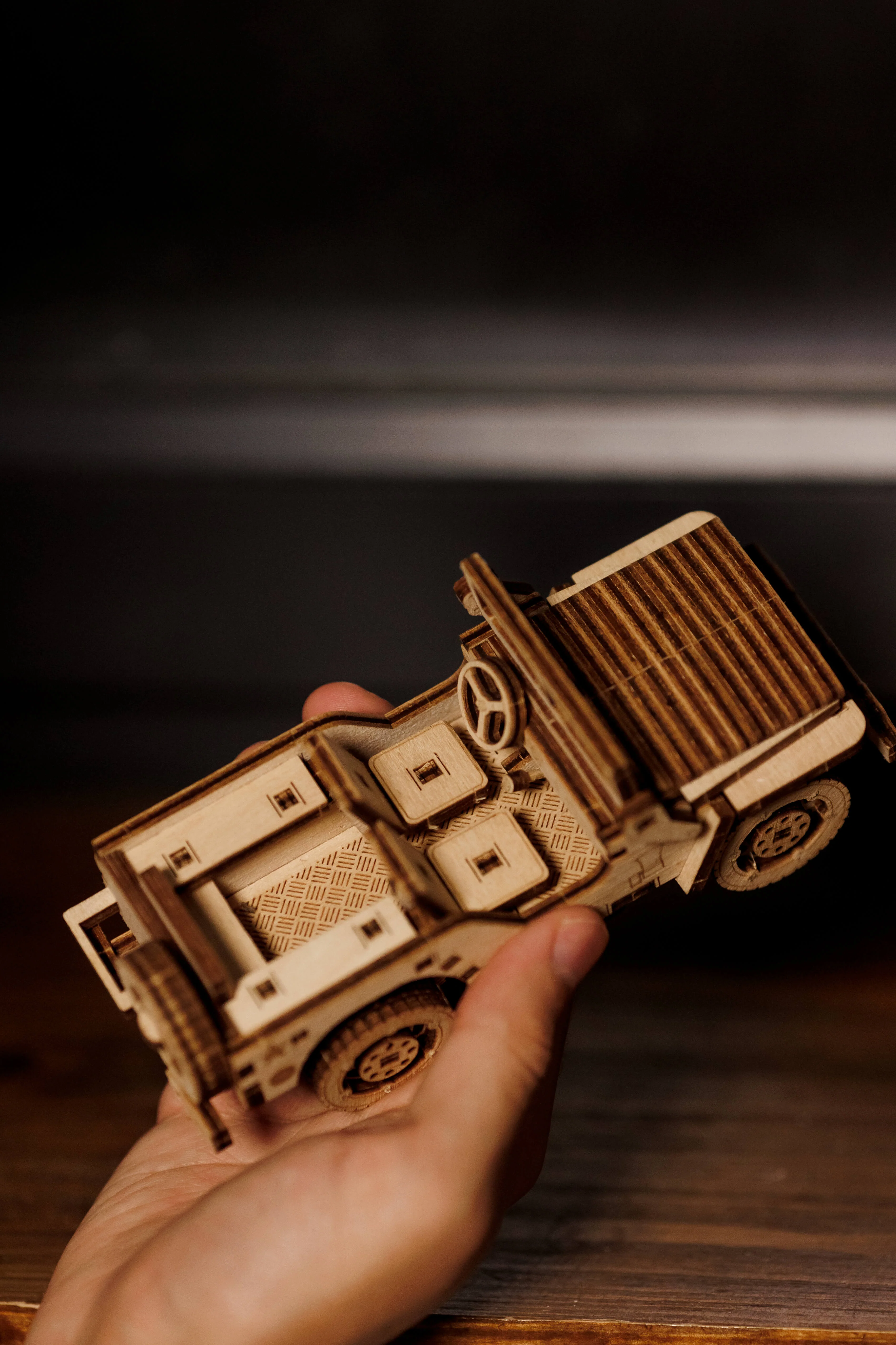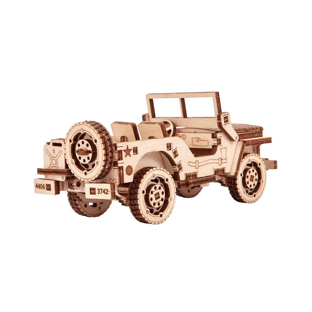 Kingitusena sobib Military SUV ideaalselt autoentusiastile, puidust mudelite kogujaile või kõigile, kes armastavad põnevaid mõistatusi. Kõik WoodTricki mudelid aitavad arendada nii loogilist mõtlemist kui ka peenmotoorikat. Kui otsid tegevust, mis pakub vaheldust ja väljakutset, on WoodTricki Military SUV 3D mudel suurepärane valik!