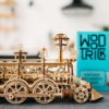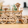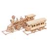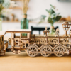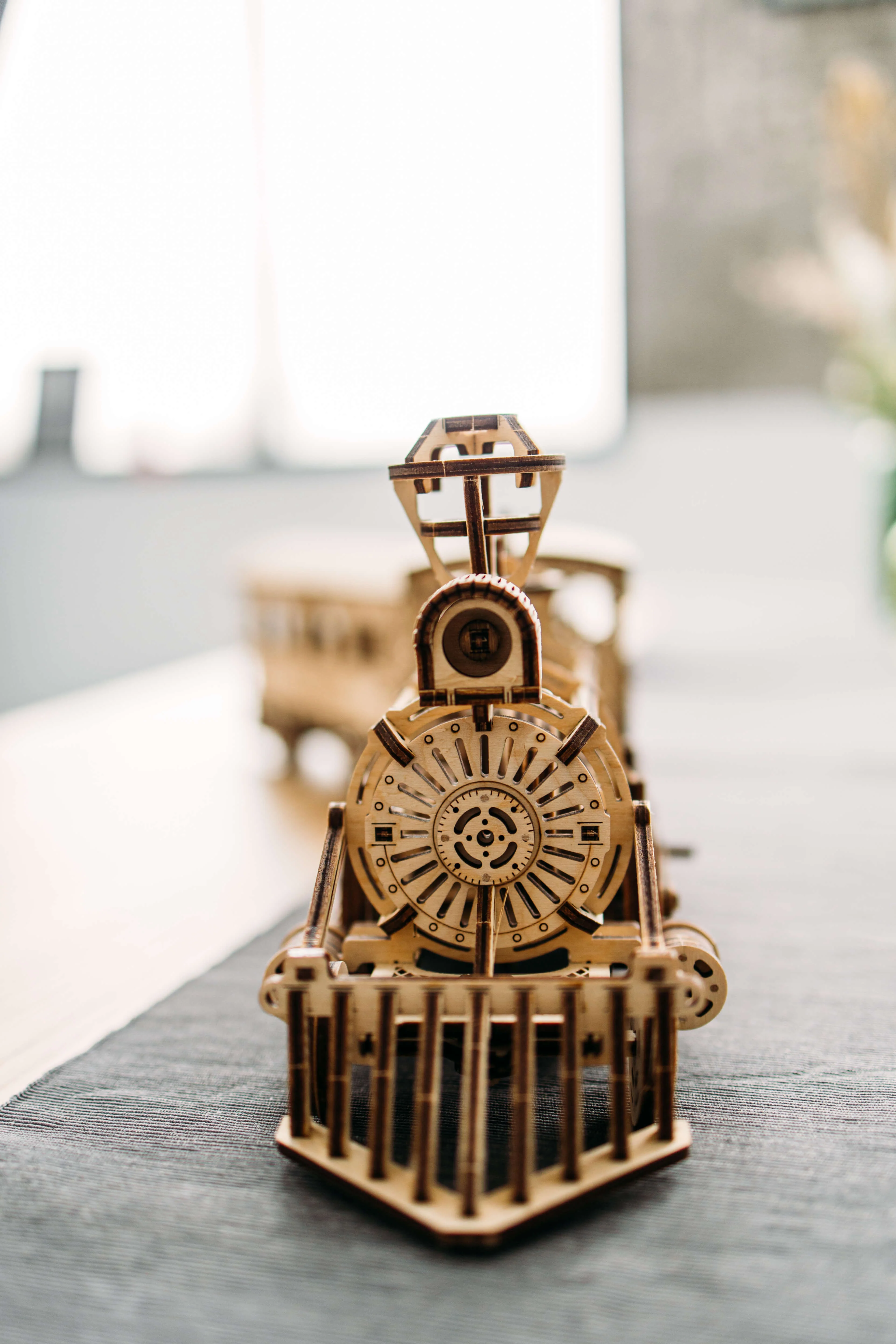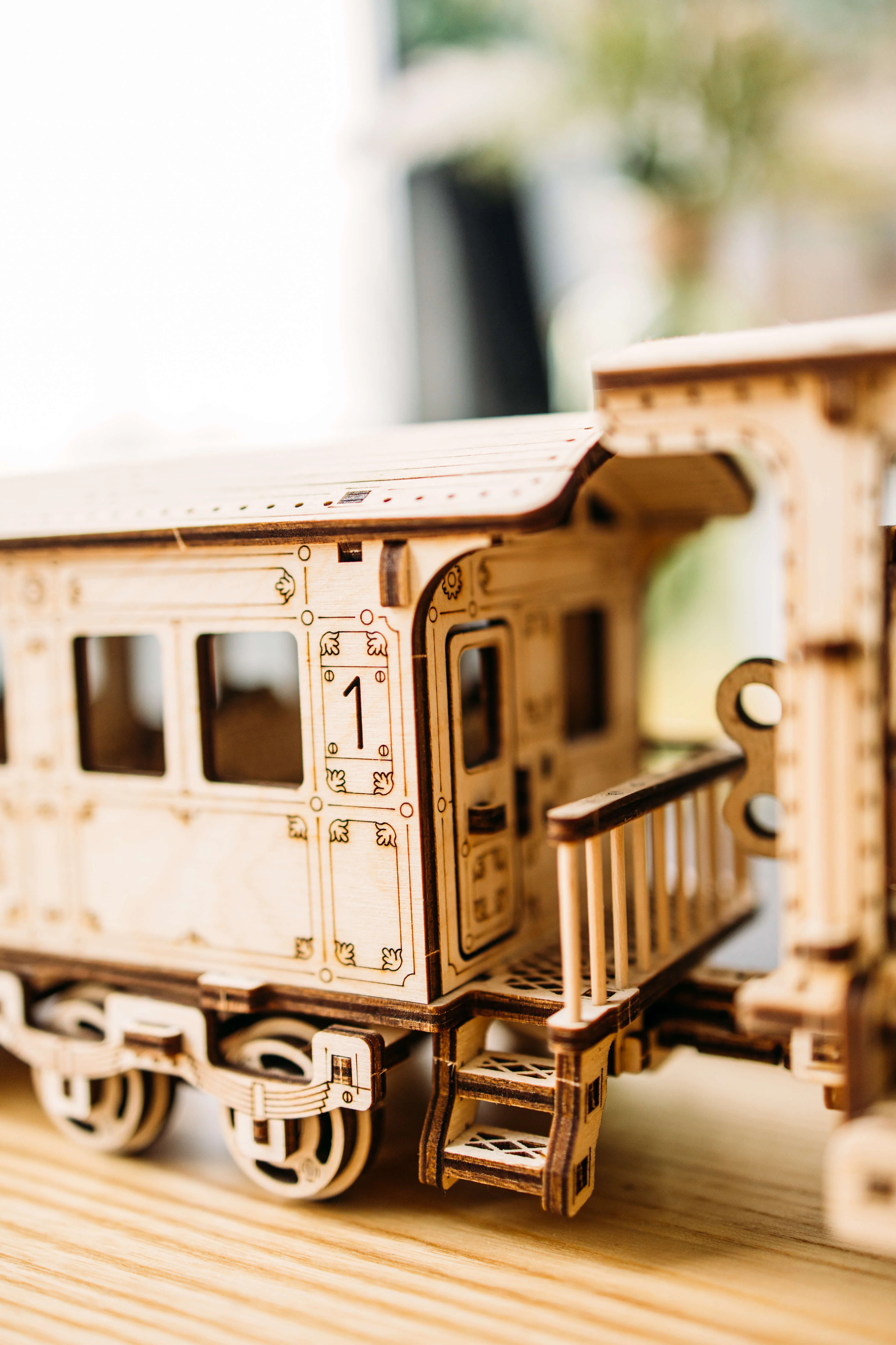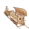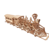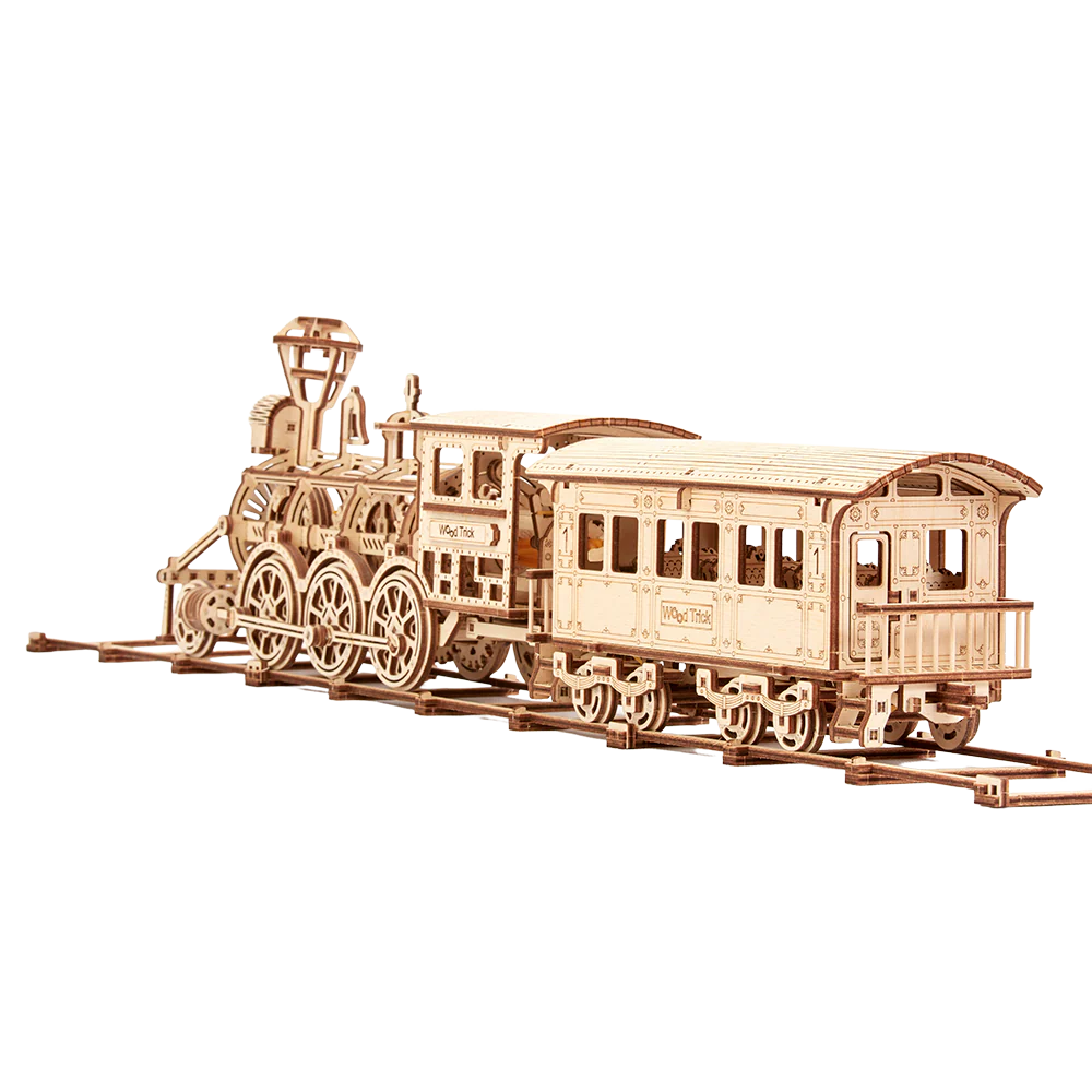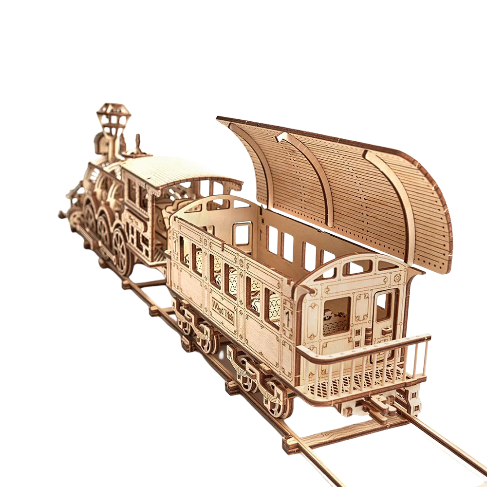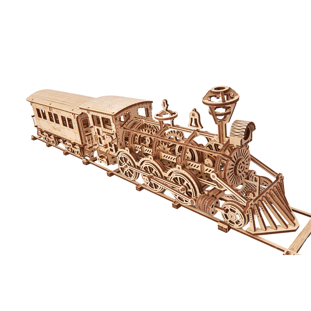 Reisijana ei märka me tihti, kui peensusteni välja projekteeritud on pealtnäha tavaline rong. Auruvedur pole siinkohal erand. Praktilisus ja efektiivsus said peamiste märksõnadena kirja pandud, kui asuti looma kiireimat sisemaa transpordiviisi. Auru jõul töötavast mootorist sai justkui kaheksas maailmaime, kuna kunagi varem polnud leitud vanale heale hobujõule võrdväärset vastast. Inimesed said mugavalt ja kiirelt liikuda ühest riigi otsast teise või enneolematutes kogustes transportida kaupu uutele turgudele. Lokomotiivi robustne väline välimus on vaid fassaadiks sisemisele graatsiale. Avades vaguni katuseluugi, saate oma silmaga näha, missugune luksus oli tollel ajal reisida. Aurust ja jõust võikski jääda rääkima, kuid selle mudeli liikuma panemiseks pole vaja ämbritega kivisütt kokku tarida, sest üles keeratav mehhanism teeb töö ära sinu eest! Mis oleks, kui pakiks kohvrid ja hüppaks vagunisse? Seiklusi täis retk on peagi algamas!